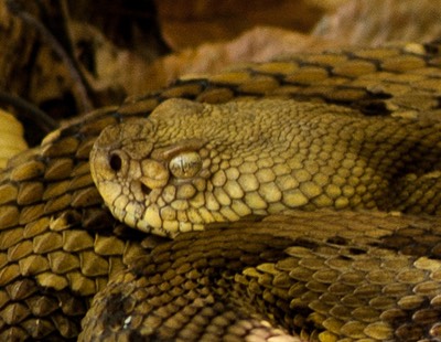 Barring any damage, all snakes have two eyes (with a dark pupil surrounded by a colorful iris), a pair of nostrils, a bifurcated tongue, enlarged ventral scales, small subcaudals, an anal plate, and a tail tip. Our two venomous snakes share another neat structure — the temperature-sensitive (or loreal) pit organ. Found on each side, between the eye and nostril, it is a large and usually obvious opening. The loreal pit leads to a thermal imaging apparatus, allowing pit vipers (where did they get that name from?) to follow prey or sense other aspects of their environment in darkness (at night, in burrows, and possibly inside winter dens).