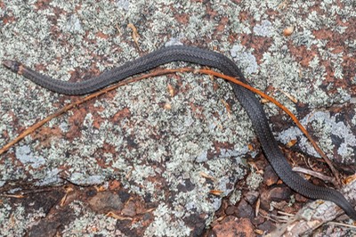 By the way, many photos of Red-bellied snakes look like the one I took above — that is to say the snake showing both its dorsal and ventral sides at the same time. Of course, this rarely happens naturally; these pictures are made when snakes have been held in hand, then placed down onto their backs, and as the snake slowly rights itself, the camera or IPhone is snapped!